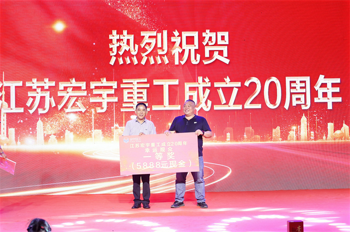 公司總經(jīng)理李善清為公司成立二十年來忠誠敬業(yè)的員工代表頒發(fā)了江蘇宏宇重工科技有限公司20周年幸運獎,表彰員工為公司發(fā)展做出的貢獻(xiàn),感謝公司客戶長期以來對宏宇的關(guān)心與支持。